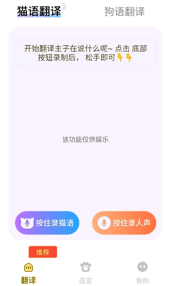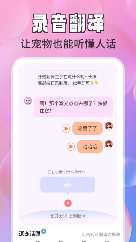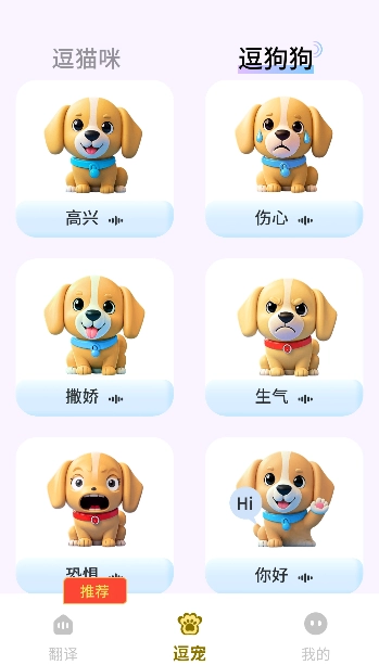 3. 全新翻译模式:提供创新的宠物翻译体验。