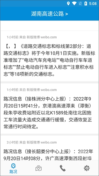 1.打开交通路况查询后,默认进入“路况”信息页面,可以直接查看所选择高速公路实时发布的信息
