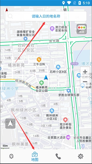 2.点击“地图”页,还可以输入目的地查询出行路线;