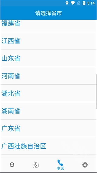 4.切换到“电话”页面,你还可以下拉寻找所在的省份;