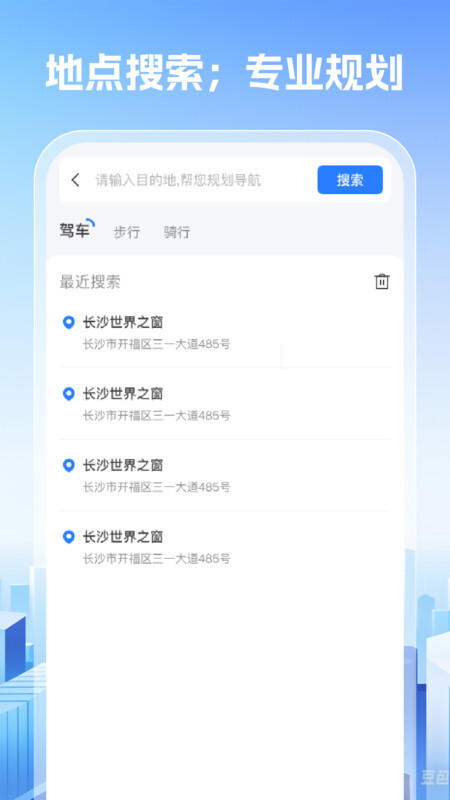 2、在目的地搜索区域,一键提交地点信息,在线搜索确认即可。