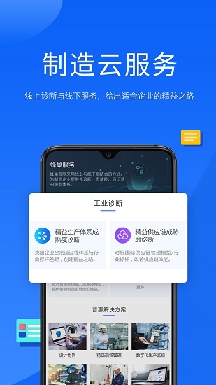 制造云服务: 通过线上诊断结合线下服务的模式,为企业规划适配其发展需求的精益化转型路径。