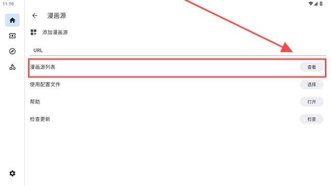 4、如箭头位置所示,用户需要选择漫画列表来进行查看,自己来添加漫画源