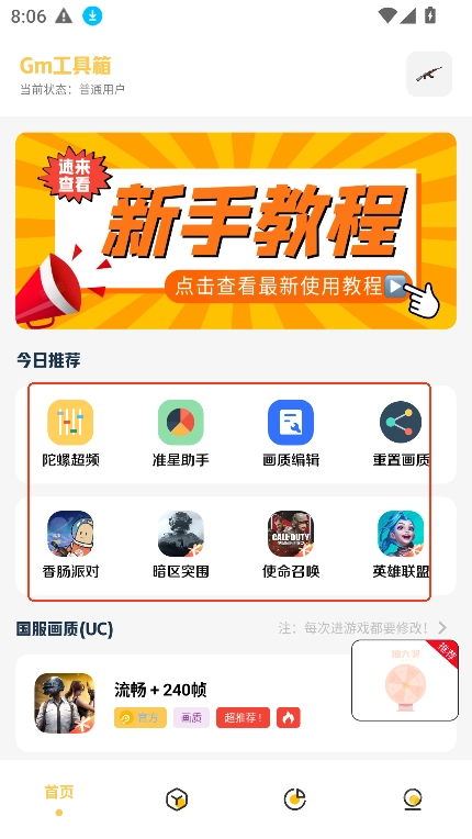 gm科技工具箱实际上它的原名叫gm工具箱,是一款完美适配和平精英的掌上画质优化神器。打开gm工具箱画质助手选择你想要重置画质的游戏版本,点击之后返回桌面重启游戏,然后就能在游戏中看到优化之后的画质效果。gm工具箱地铁派克apk的使用方法相当简单,且安全性也非常高,没有封号风险,大家可放心使用!