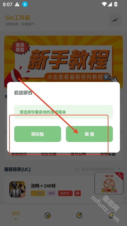 4、选择好需要的功能,点击首页右上角,切换游戏国际服,还是国服