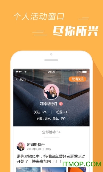 6. 【关注达人】 一键关注您感兴趣的活动达人,精彩活动不再错过,您也可以成为活动达人哟。