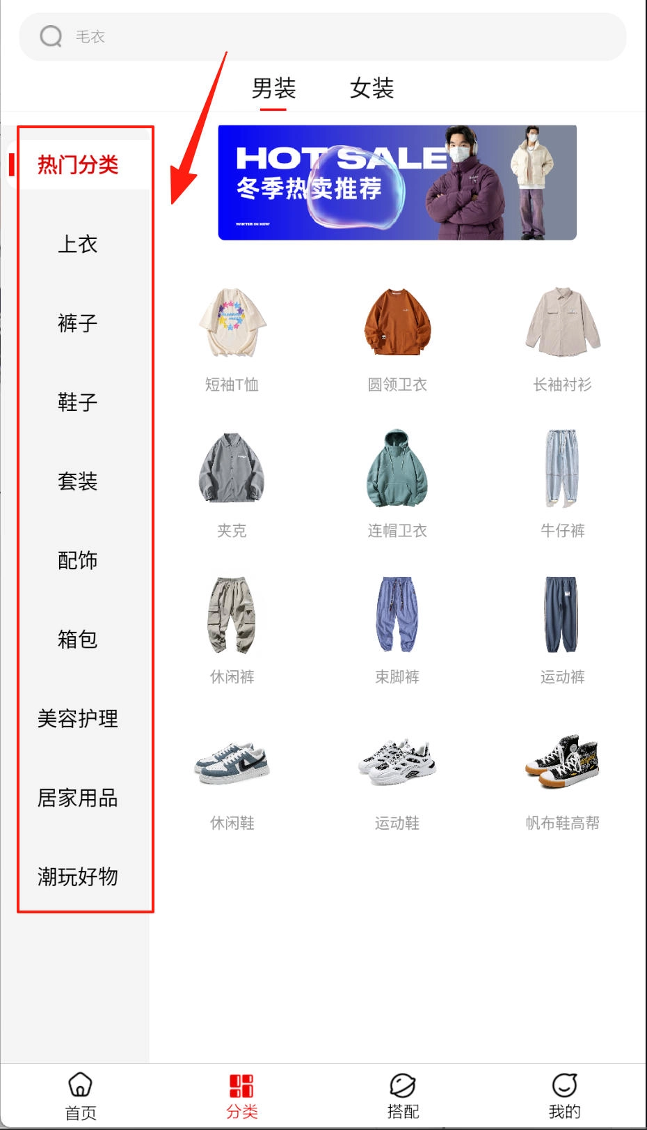 2、如果首页无法找到心仪的商品,那我们还可以切换到分类页面,这里会有更加详细的分类。