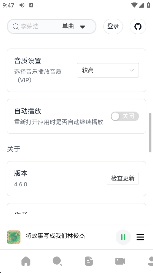 2.支持网易云音乐账号登录,同步歌单、收藏和播放历史。