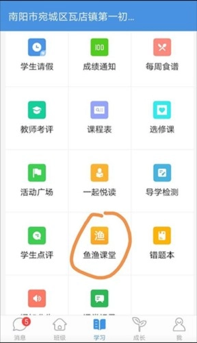8、点击“学习”,进入“鱼渔课堂”,进行自学。