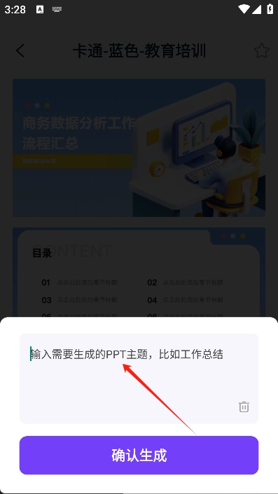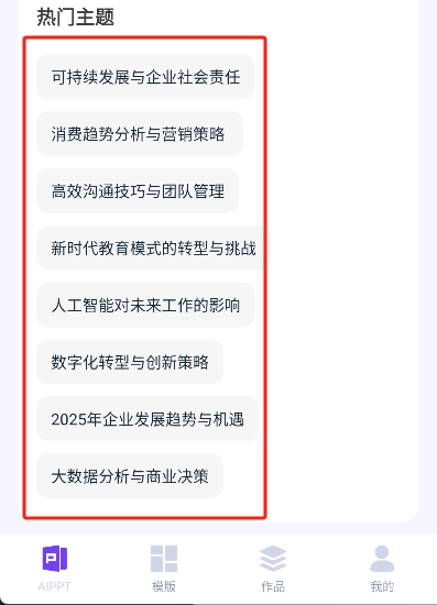 2. 输入主题,利用软件的AI功能生成完整的PPT大纲。