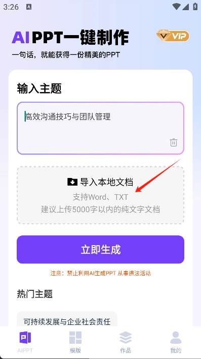 - 导入文档:支持用户任意导入文档,一键智能生成PPT。