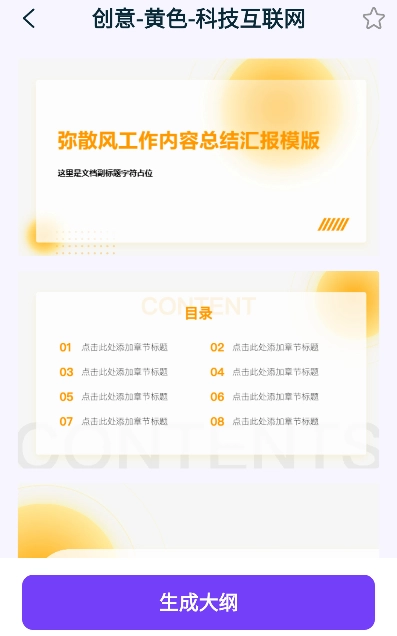 AI一键生成PPT是一款非常专业且好用的手机PPT智能生成软件,可以帮助我们自动生成所需要的演示文稿。而且操作的方法也很简单,只需要输入相关的文本、关键词或大纲,就可以迅速生成一份结构完整且设计美观的PPT。此外AI一键生成PPT软件也提供了海量的模版可以使用,还可以对生成的内容进行更改噢!