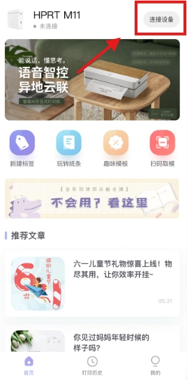 1、打开印条,进入主界面,点击连接设备。