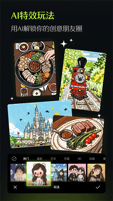 一键叠图工具(醒图)还支持ai特效玩法,可以用ai来解锁我们的创意朋友圈,另外一键叠图工具(醒图)还支持修live,没错,实况图也能修啦,而且还不用担心修完画质会压缩哦。