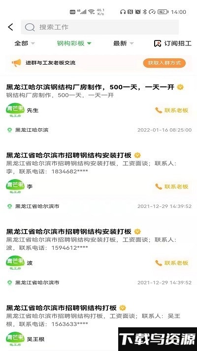 1. 打造高效、智能的建筑招工找活平台,目前已获得千万建筑工友的使用认可;