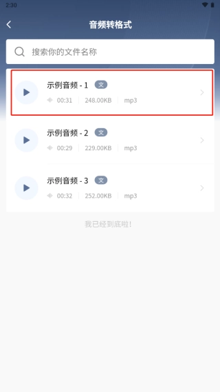 2、在文件列表中选取一段需要转换的音频文件。