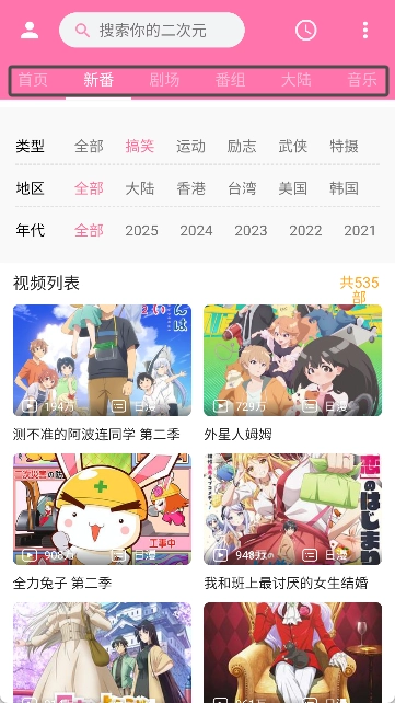 4、在所选择的栏目列表中浏览并选择感兴趣的番剧。