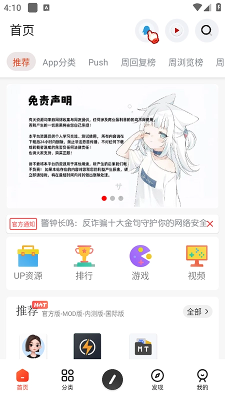 日奈社区是一款实力有目共睹的万能资源分享+的神器。在这个日奈社区最新版当中为大家搜集了全网各种类型的优质应用、,供大家免费安装到手机上直接使用。打开日奈社区点击最下方的分类就能按照你想找的资源类型去搜索。值得一提的是该软件提供的所有资源全都是免费的,不用花一分钱!