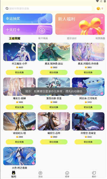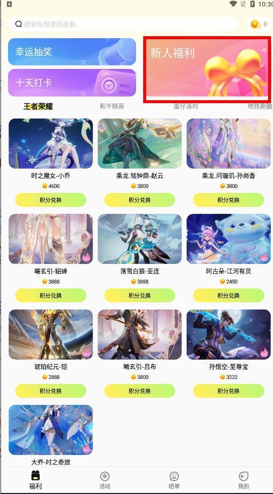 【免费领皮肤】就是你的福利宝箱。