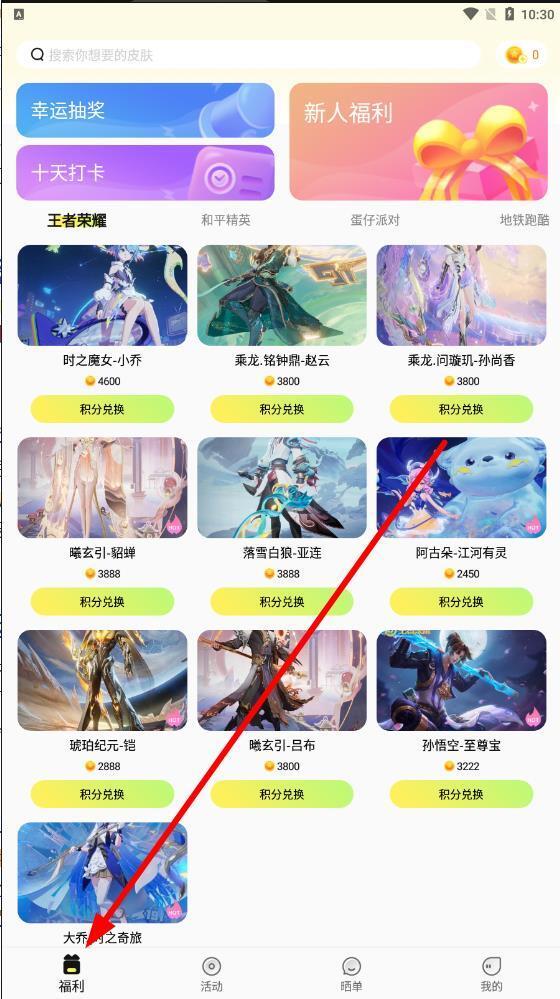 4.挑选心仪游戏对应的皮肤,接着点击【积分兑换】按钮就能得到。