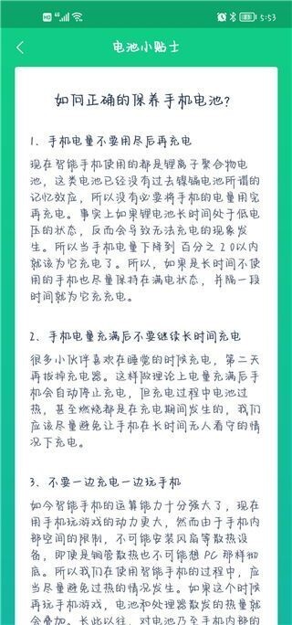 4、软件还为用户提供了电池小贴士,方便用户了解如何正确保养手机。