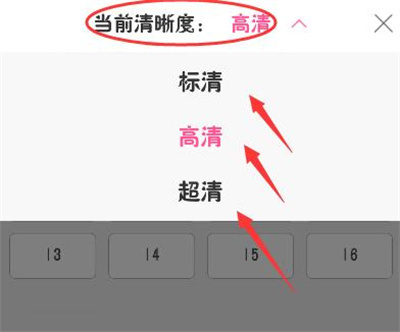 3.点击页面上方“当前清晰度”后,可在弹出的选项中设置当前缓存剧集的清晰度。