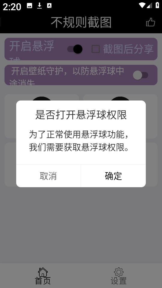 悬浮球功能:一键启动悬浮球,可在不同页面快速截图。