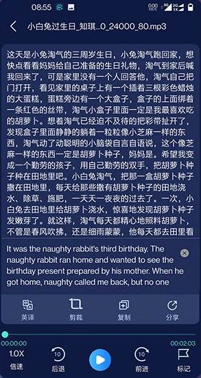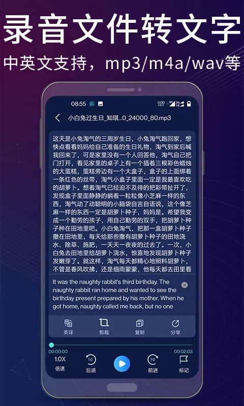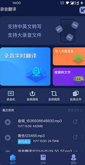 【音频转文字】录音翻译助手还可以读取已有的音频文件,将之转换为文字。