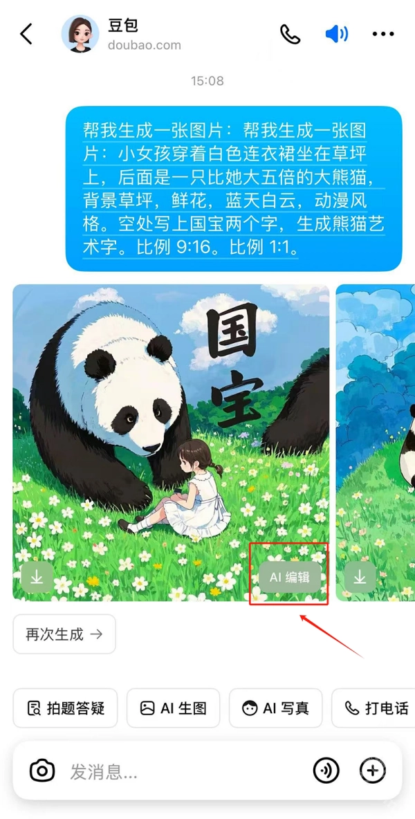 4、如果觉得生成的图片不符合要求,点击【AI编辑】对图片进行二次创作和调整。