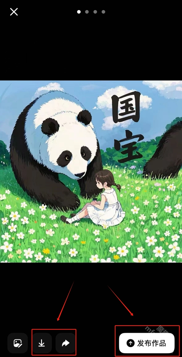 3、等待豆包生成符合要求的图片,若觉得满意,可对生成图片进行保存、分享、发布作品操作。