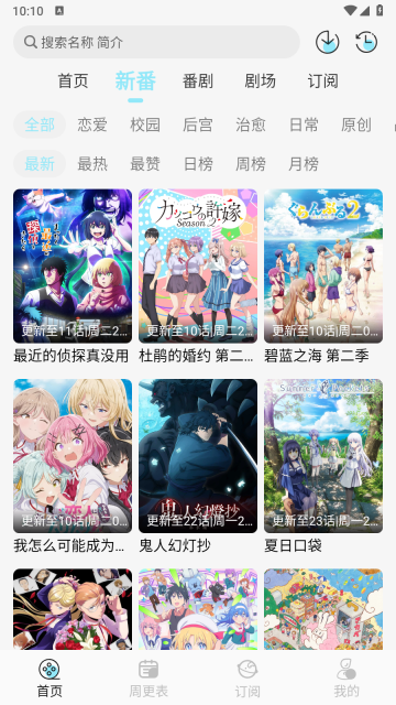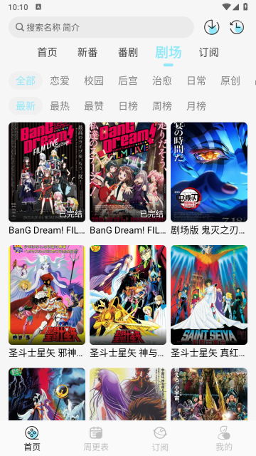 1.启动风铃动漫App,进入首页后可以看到新番、剧场等板块的内容