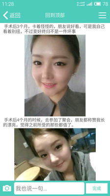 2. 平台上有很多用户在线分享自己的整容经历,你可以快速在线上找到其他用户进行交流。