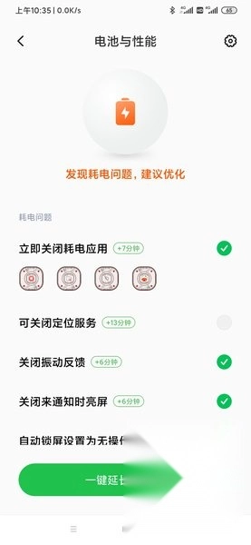 2. 在省电与电池功能中查看当前耗电应用;