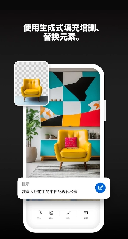 图像编辑与修饰 :提供生成式填充功能,通过文本提示可以向已有图像中添加新元素、移除不需要的部分,或对图像中的内容进行修改和替换。