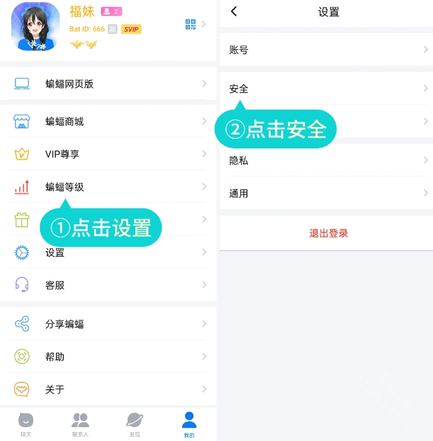 在【我的—>设置—>安全—>销毁账号】中选择【立即销毁】,或选择一个自动注销时间,如果在这个时间里,一直未登录使用蝙蝠,账号就会自动注销。