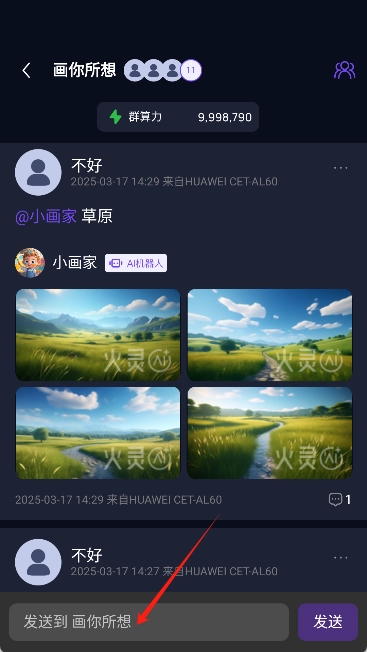 4. 在绘画板块中输入创作想法,生成并保存艺术作品。