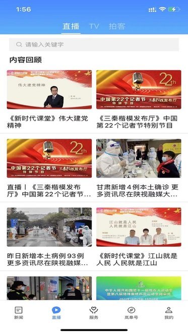 支持新闻搜索,根据关键词搜索新闻、直播、视频等;