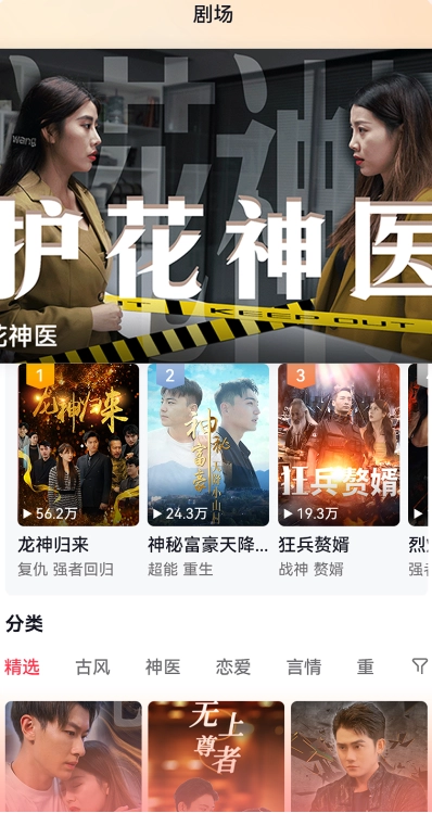 ·爱看短剧精品剧场模块,可供用户选择更高质量的短剧内容。