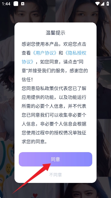 1、打开言途后,首先要同意用户协议和隐私政策。