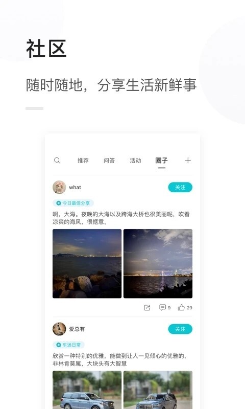 1、*社区互动:这里有一个开放的用户社区,你既能分享当下的精彩瞬间,结识更多E-Fans,还能报名参与各类社群活动,通过打卡分享来赢取积分。