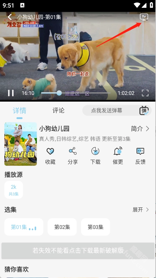1、点开想看的影视,点击右上角的“TV”