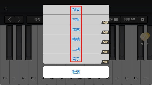 2. 可以根据需要选择不同的乐器音,方便进行弹奏。