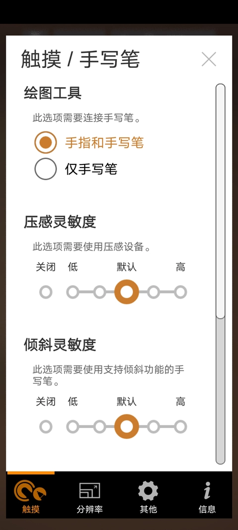 2、点击上方的画笔按钮,可调整画笔的粗细和类型。
