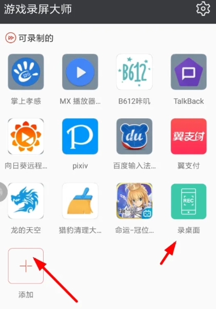 2、通过点击添加新游戏的分类列表下,点击即可在软件主页里添加录屏快捷启动图标