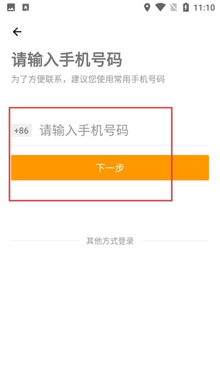 2、进入登录页面,需输入+86地区码对应的手机号码,输入后点击【下一步】完成验证,也可选择【其他方式登录】.