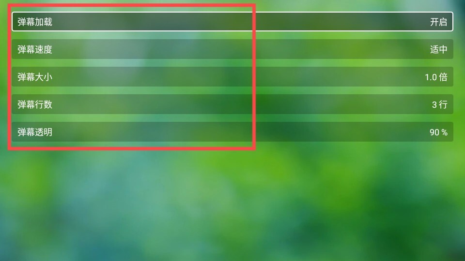3、接下来可以自定义调整弹幕的速度、大小、行数以及透明度等相关参数。