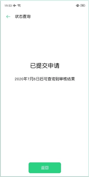 3. 提交申请满一个月后,查询审核状态,如果审核通过会显示审核通过的界面。