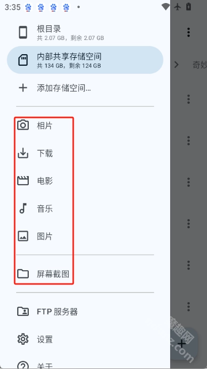 2.点击侧栏来切换不同的存储目录,如相片、、电影、音乐、图片、截图等文件夹。
