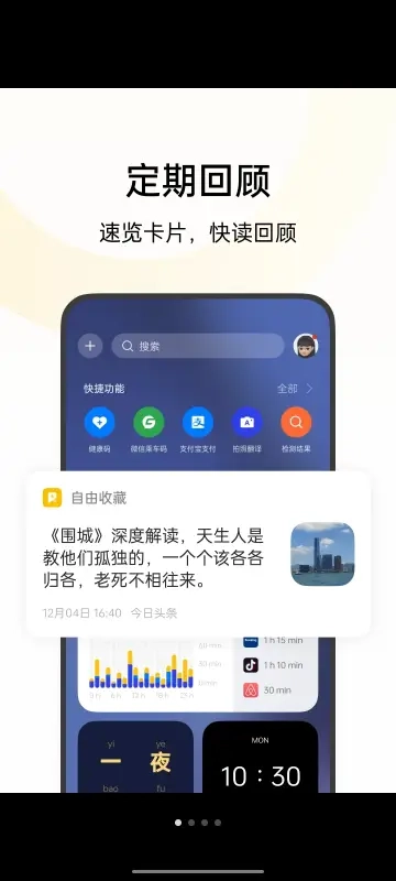4.可以通过桌面图标、负一屏、智能侧边栏、控制中心等多种方式快速进入自由收藏查看内容