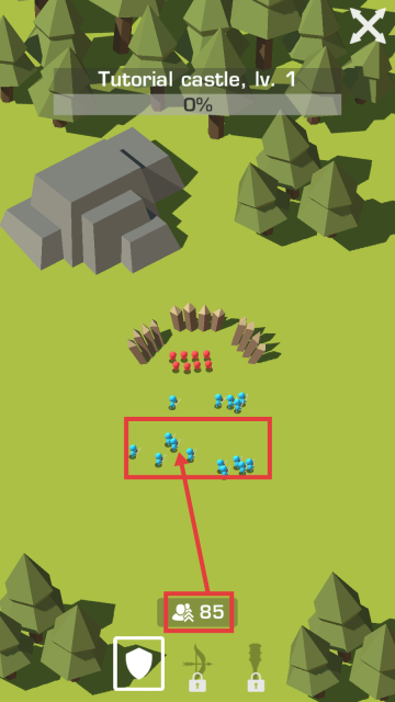 2、调度【85】名蓝色士兵,对红色敌人发动攻击,开启阵营对抗。